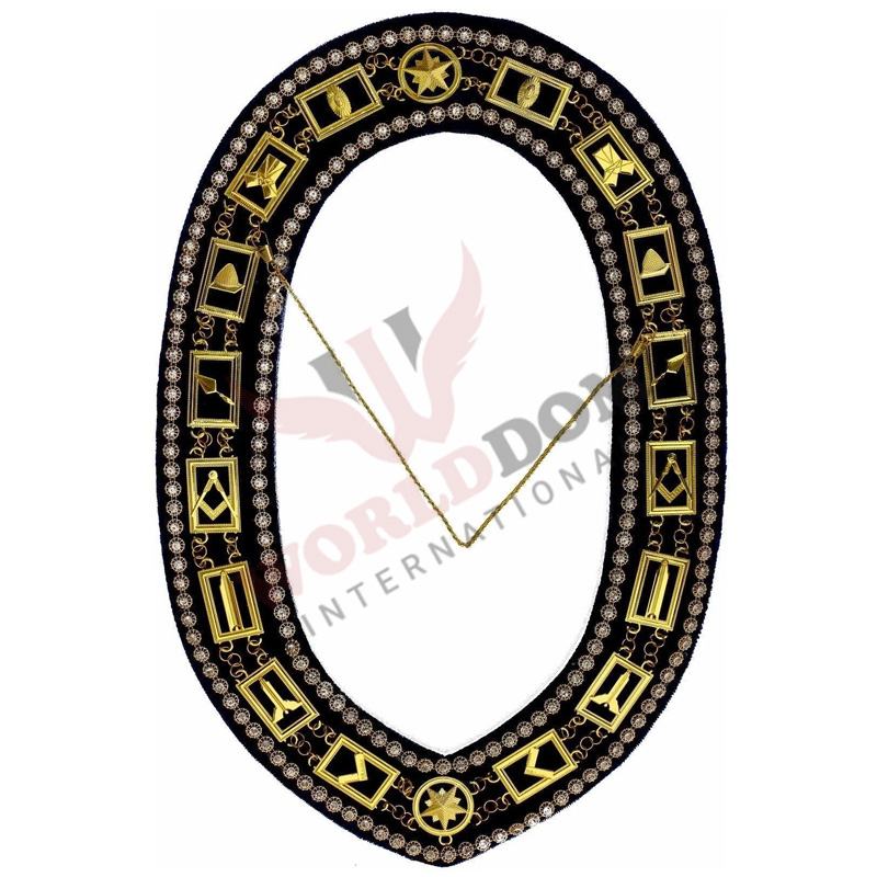 Blue Lodge Chain Collar with Rhinestones on Blue Velvet