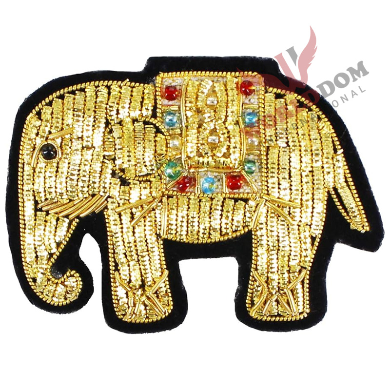 Handmade Gold Elephant Silk Bullion Wire Brooches