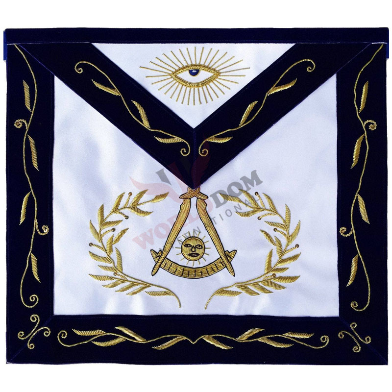 Past Master Blue Lodge Apron Blue Velvet with Gold Hand Embroidery