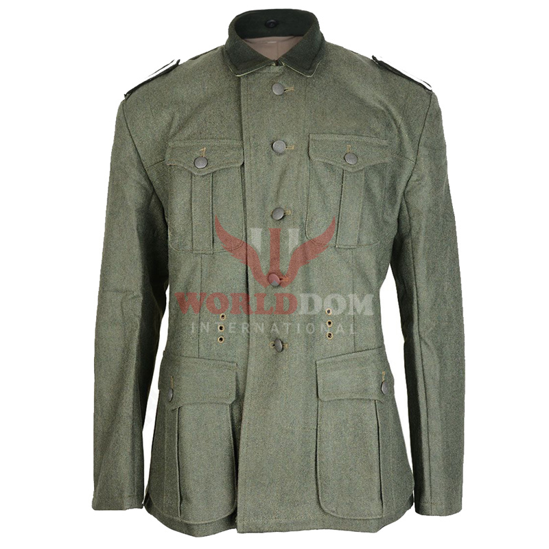 WW2 German M36 Field Grey Tunic with dark green collar and shoulder boards. Made of 80% Cotton.