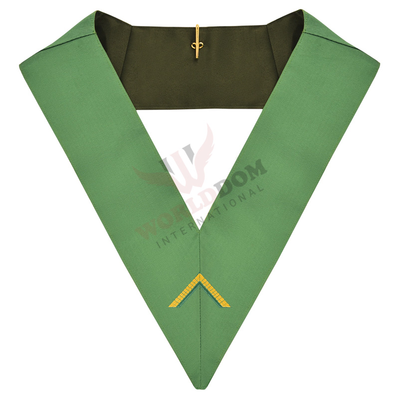 Worshipful Master Cerneau Rite Officer Collar Green Ribbon Machine Embroidery